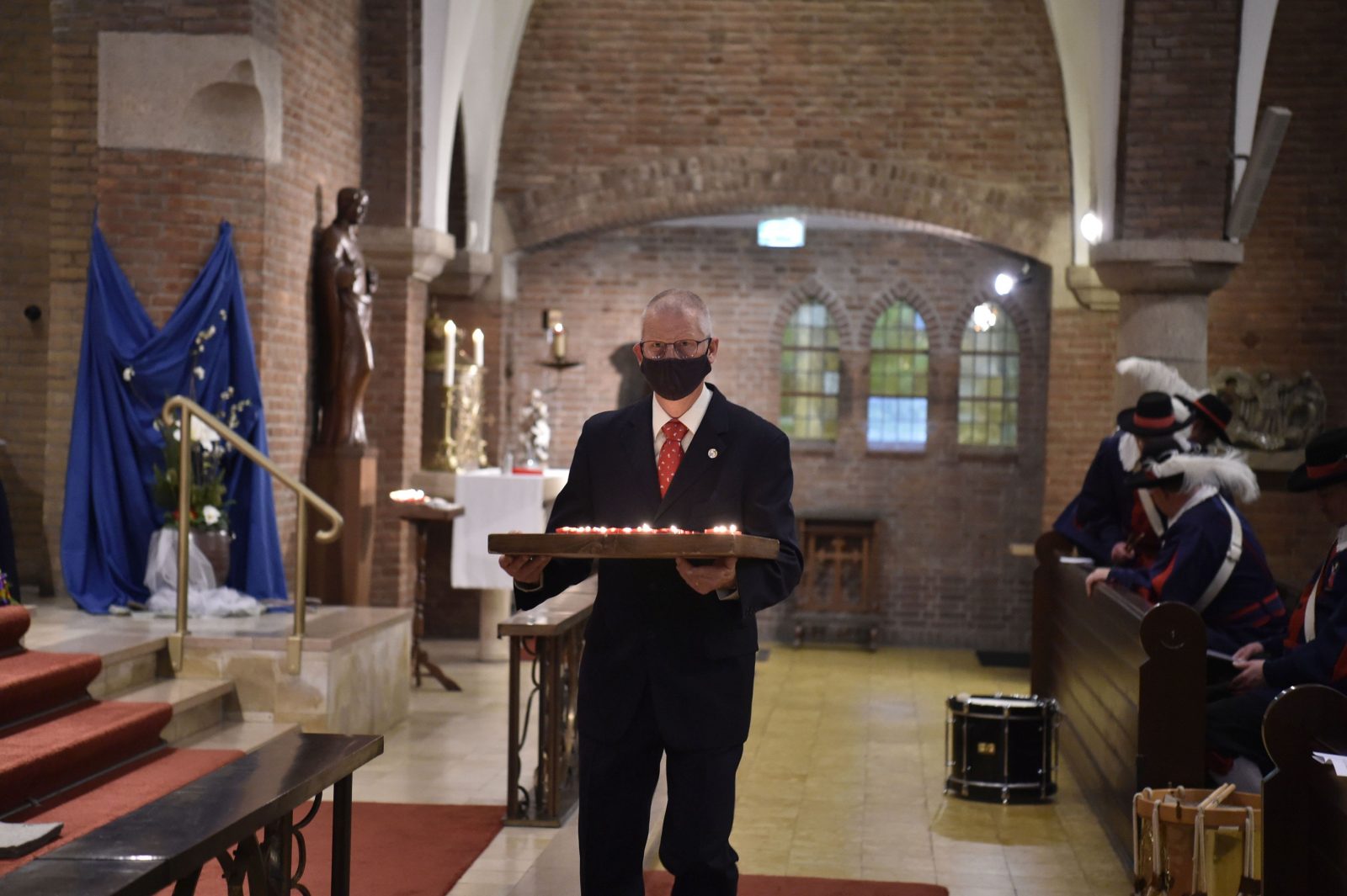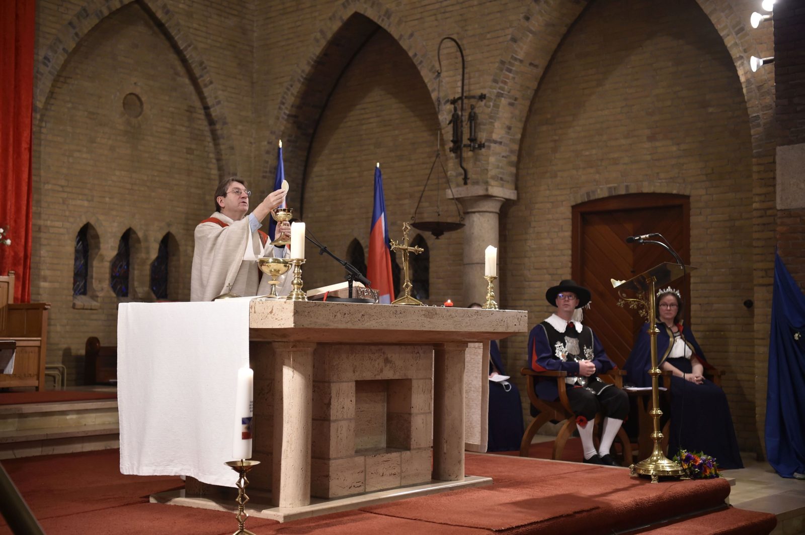 Aan het einde van de viering werd hij welkom geheten door de vicevoorzitters van beide parochies.