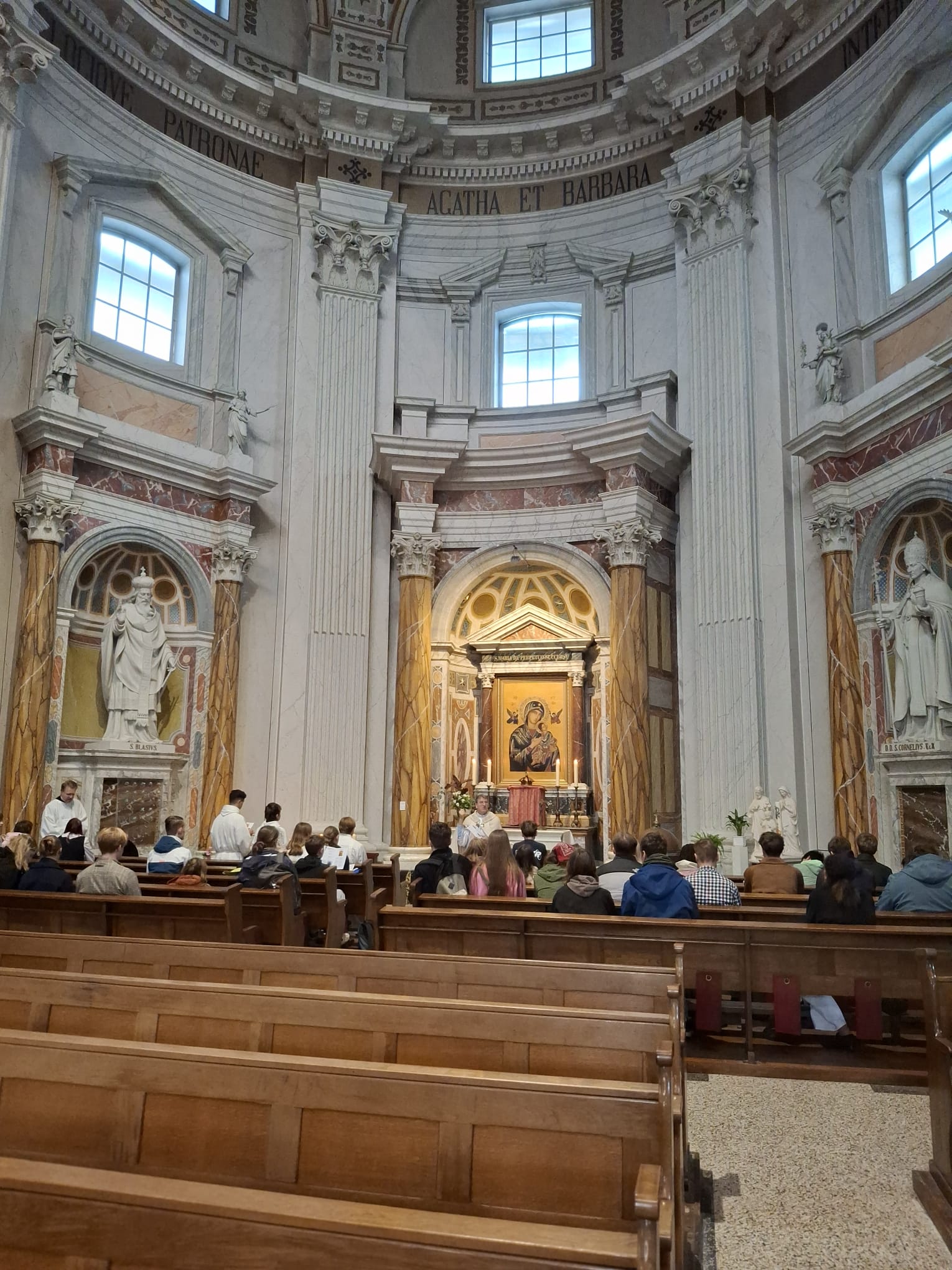 Met een bus vol enthousiaste kinderen, tieners en jongeren vertrok pastoor Skiba op 19 oktober op bedevaart naar ‘Rome’ – of nou ja, de Nederlandse versie daarvan: Oudenbosch! Na een reisgebed, een lied en een kennisquiz over Italië en Rome, vertelde pastoor over heilige deuren en pelgrim-zijn. Bij aankomst in Oudenbosch bij de indrukwekkende Basiliek van de H. Agatha en Barbara, mochten we als echte pelgrims door de ‘heilige deur’ naar binnengaan.